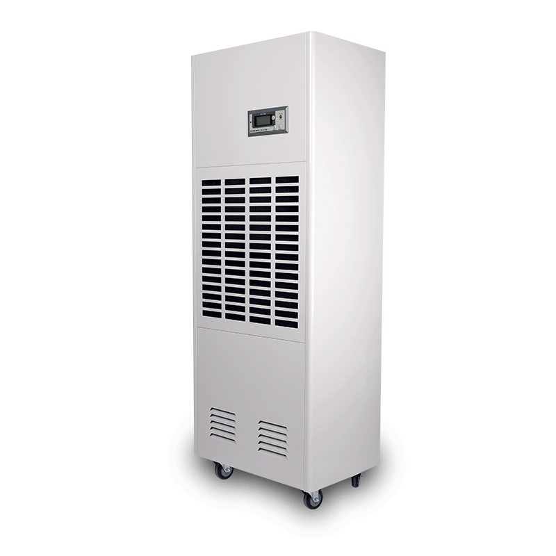 工業(yè)除濕機(jī)由壓縮機(jī)、交換器、風(fēng)機(jī)、盛水器、機(jī)殼及控制器等組成,其工作原理是:由風(fēng)扇將潮濕空氣抽入機(jī)內(nèi),通過(guò)熱交換器,此時(shí)空氣中的水份冷凝成水珠,變成干燥的空氣排出機(jī)外,如此循環(huán)使室內(nèi)濕度降低。